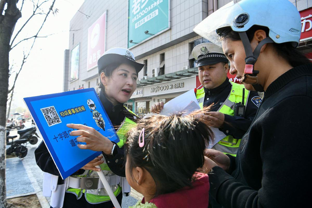 4月7日,安徽省馬鞍山市含山縣公安局交管大隊在城區(qū)開展電動自行車和摩托車不戴安全頭盔、違法載人勸導(dǎo)查處整治行動。