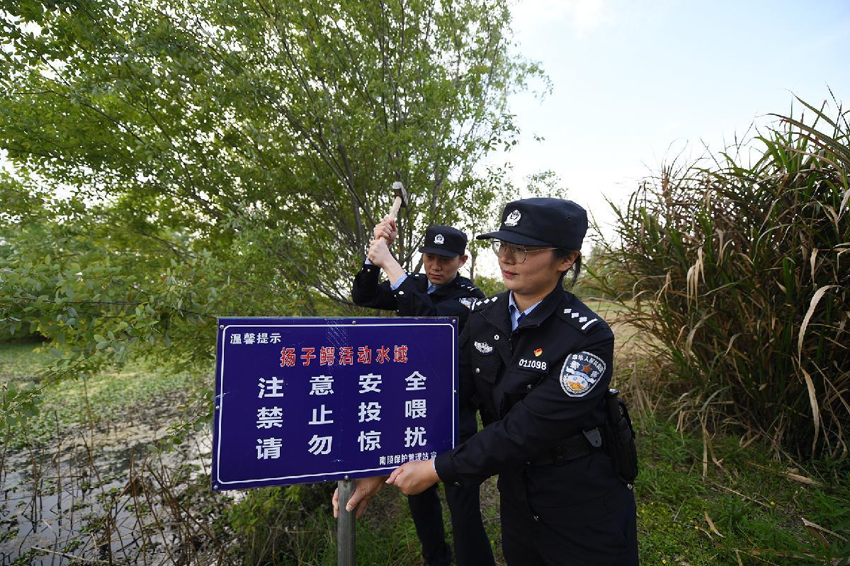4月7日,安徽省蕪湖市公安局環(huán)境資源和食品藥品犯罪偵查支隊聯(lián)合南陵縣公安局環(huán)境資源和食品藥品犯罪偵查大隊民警,深入揚子鱷國家級自然保護(hù)區(qū)核心區(qū)域南陵縣籍山鎮(zhèn)長樂村,通過對揚子鱷棲息地水質(zhì)進(jìn)行抽檢、安裝保護(hù)揚子鱷宣傳牌、入戶走訪農(nóng)戶進(jìn)行保護(hù)揚子鱷宣傳等多種方式,全方位保護(hù)揚子鱷自然保護(hù)區(qū)生態(tài)環(huán)境。