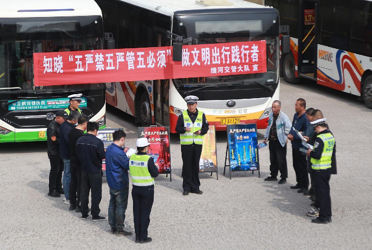 4月14日,遼寧省阜新市公安局交管支隊細河大隊民警深入轄區(qū)公交公司,開展“五嚴禁五嚴管五必須”交通安全宣傳活動。