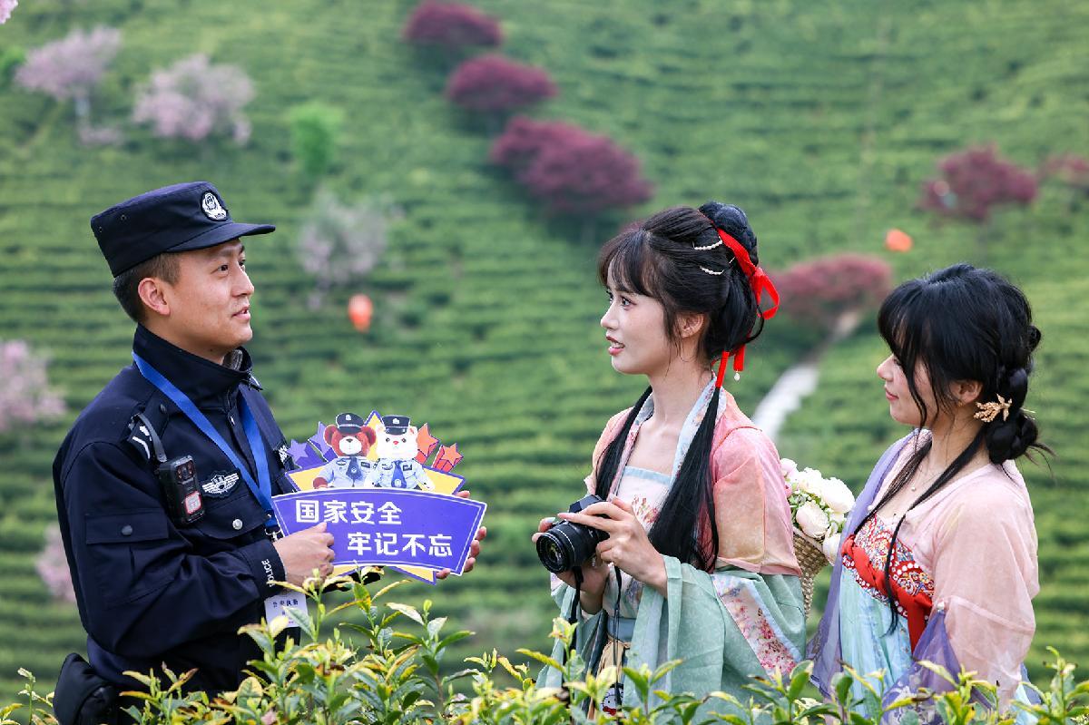 4月13日,安徽省廣德市公安局柏墊派出所組織民警輔警深入轄區(qū)鳳凰山生態(tài)茶園,開(kāi)展全民國(guó)家安全教育日主題宣傳。