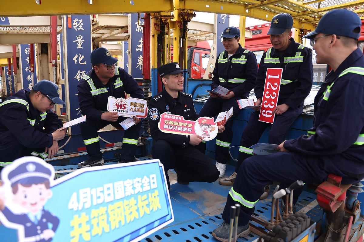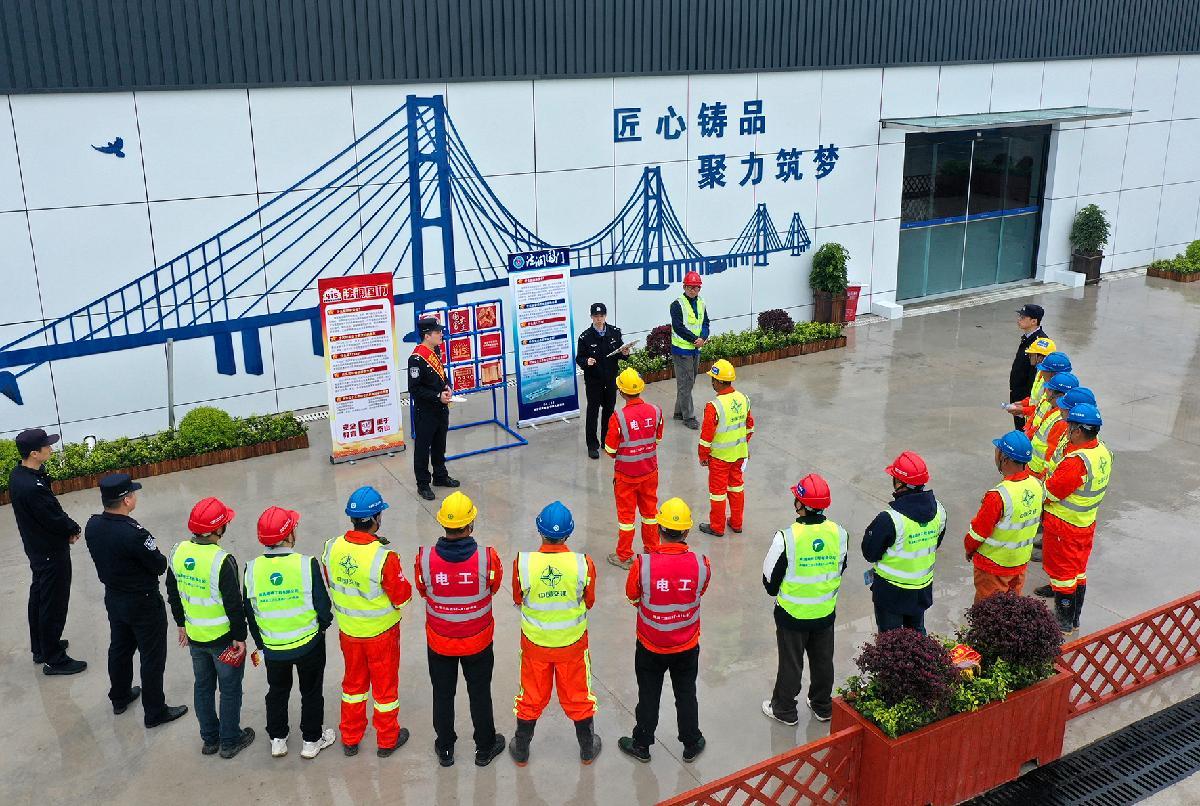 4月14日,長(zhǎng)江航運(yùn)公安局南通分局通州派出所聯(lián)合南通出入境邊防檢查站執(zhí)勤三隊(duì)走進(jìn)蘇通第二過(guò)江通道項(xiàng)目現(xiàn)場(chǎng),開(kāi)展“國(guó)家安全 你我共筑”主題宣傳。