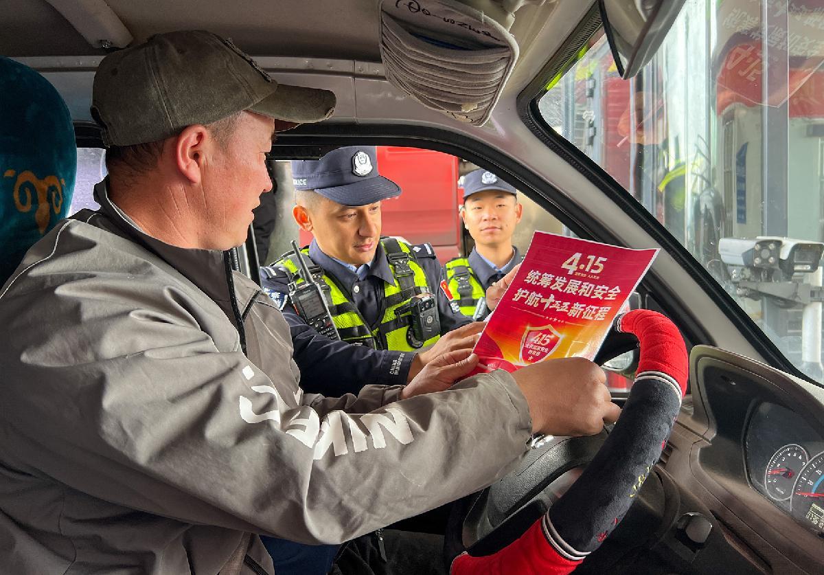 4月14日,新疆阿勒泰邊境管理支隊(duì)塘巴勒邊境檢查站立足執(zhí)勤一線,扎實(shí)開(kāi)展全民國(guó)家安全教育日主題宣傳。