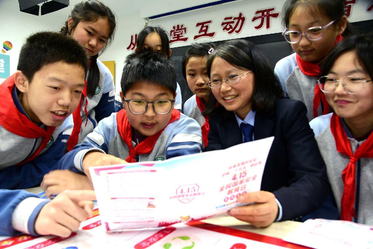 4月13日,在江蘇省鎮(zhèn)江市南徐小學(xué),潤(rùn)州區(qū)七里甸司法所工作人員向小學(xué)生宣講國(guó)家安全及相關(guān)的法律知識(shí)。