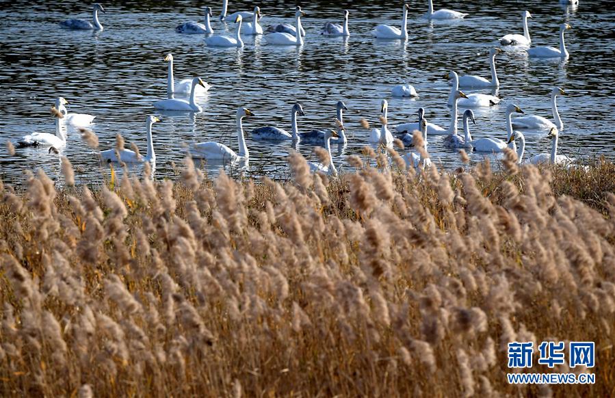 白天鵝在三門峽天鵝湖國(guó)家城市濕地公園棲息(11月14日攝)。新華社記者 李安 攝