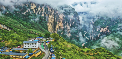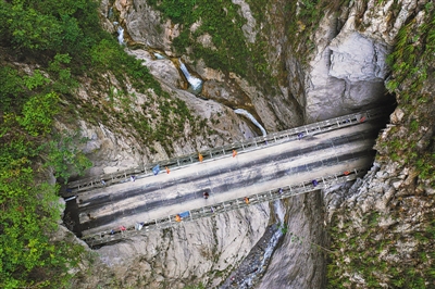 6月29日,俯瞰阿布洛哈村通村公路2、3號隧道之間的鋼橋。