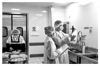 “航空食品具有供應(yīng)鏈長、環(huán)節(jié)多等特點(diǎn),保質(zhì)期又通常比較短。航食企業(yè)從采購、貯存到加工、綜合裝配、過渡冷藏,最終運(yùn)送裝機(jī),任何一個(gè)環(huán)節(jié)出現(xiàn)紕漏都可能影響食品的安全性?!蹦暇┑摽跈C(jī)場海關(guān)衛(wèi)生監(jiān)督科科長王斌介紹,為了讓廣大旅客吃得安心、吃得安全,除了現(xiàn)場進(jìn)行檢查外,海關(guān)關(guān)員還會(huì)針對(duì)蔬菜農(nóng)藥殘留、食品中心溫度及食用油酸價(jià)等項(xiàng)目開展快速檢測,并對(duì)生產(chǎn)的食品隨機(jī)抽樣送實(shí)驗(yàn)室檢測,以強(qiáng)化對(duì)食品生產(chǎn)經(jīng)營單位的監(jiān)管。
