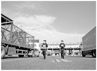 圖為在港珠澳大橋,海關(guān)關(guān)員驗(yàn)放貨物。 俞波 攝