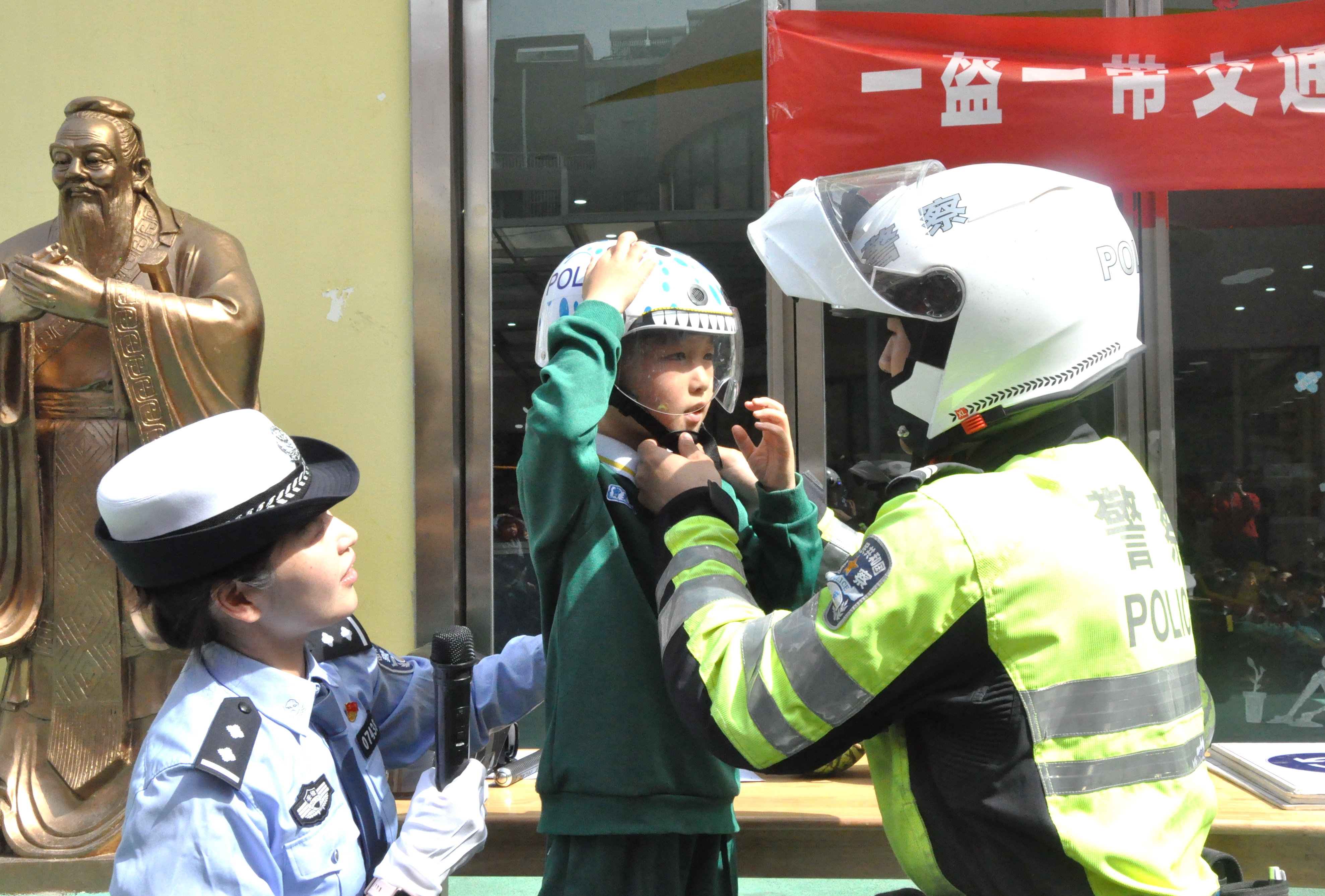 5月6日,安徽省含山縣公安局交警大隊民警深入轄區(qū)幼兒園,組織開展“一盔一帶”交通安全宣傳進(jìn)校園活動。民警結(jié)合幼兒實(shí)際,通過實(shí)物對比、現(xiàn)場體驗(yàn)、互動問答等形式,向小朋友們宣講出行安全基本常識以及駕乘電動車不佩戴安全頭盔、乘坐汽車不系安全帶存在的安全隱患及危害性。圖為民警現(xiàn)場教小朋友如何正確佩戴安全頭盔。