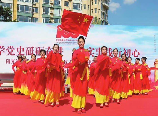 建黨百年,老百姓也迎來(lái)了高興的節(jié)日,大家歡喜雀躍,愛(ài)黨之情溢于言表。圖為長(zhǎng)春市陽(yáng)光社區(qū)開展的慶祝建黨百年活動(dòng)。(記者吳茗 攝)