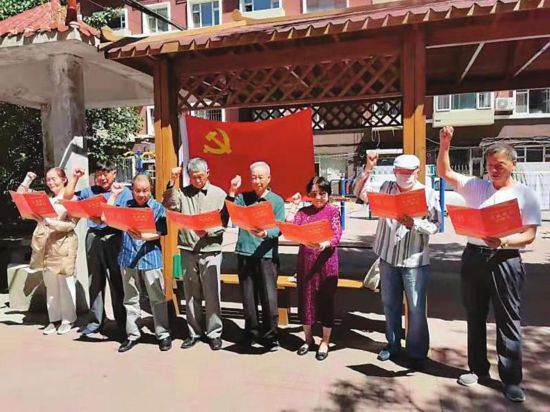 建黨百年之際,東北師范大學(xué)環(huán)境學(xué)院的離退休老黨員開展重溫黨的誓言活動(dòng)。(記者吳茗 攝)