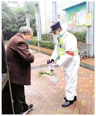 勞動二社區(qū)是大型國有企業(yè)西電公司的老家屬院,沒有電梯,老年人、殘疾人比較多,上下樓不方便。社區(qū)和物業(yè)防護器材都很缺乏,民警劉華侃利用防護裝備齊全的優(yōu)勢,擔任了義務送菜員,給下樓不方便的老人義務送菜。