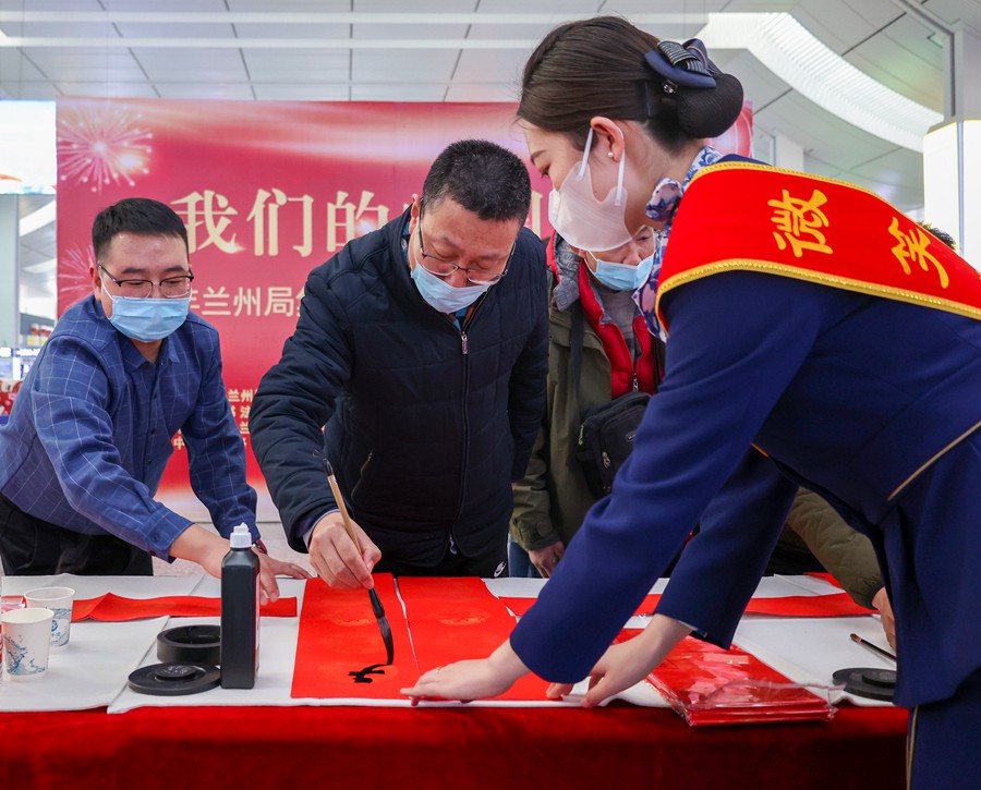 本次“送萬(wàn)?!みM(jìn)萬(wàn)家”書(shū)法公益活動(dòng)在吸引歸鄉(xiāng)旅客駐足觀看、欣賞書(shū)法藝術(shù)的同時(shí),也讓大家提前收到了來(lái)自鐵路部門的新春祝福,感受到了濃濃的年味。(黃帆)