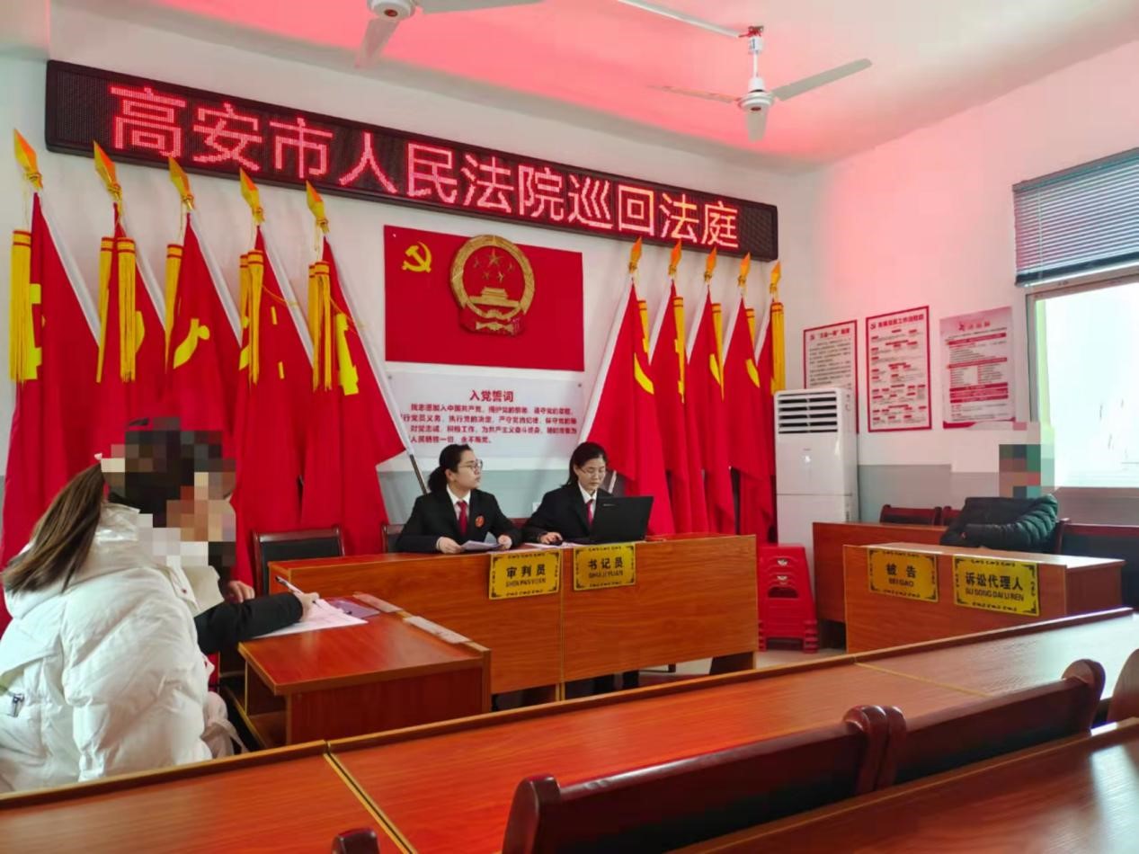 2月22日,江西省高安市人民法院民事團隊冒著漫天大雪,驅(qū)車四十多分鐘趕赴藍坊鎮(zhèn)三孫村,再次將巡回法庭搬進鄉(xiāng)村,在村委會審理了一起離婚糾紛案件。