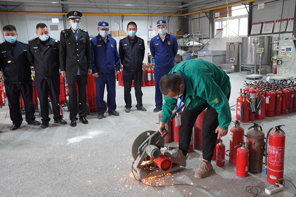 3月15日上午,北京市大興區(qū)消防救援支隊(duì)聯(lián)合區(qū)市場(chǎng)監(jiān)督管理局等職能部門(mén),開(kāi)展了“ 3·15 ”假冒偽劣消防產(chǎn)品集中銷毀活動(dòng)。工作人員對(duì)100余具不合格的滅火器以及達(dá)到使用年限需報(bào)廢的滅火器進(jìn)行切割銷毀,防止不法商販回收利用。