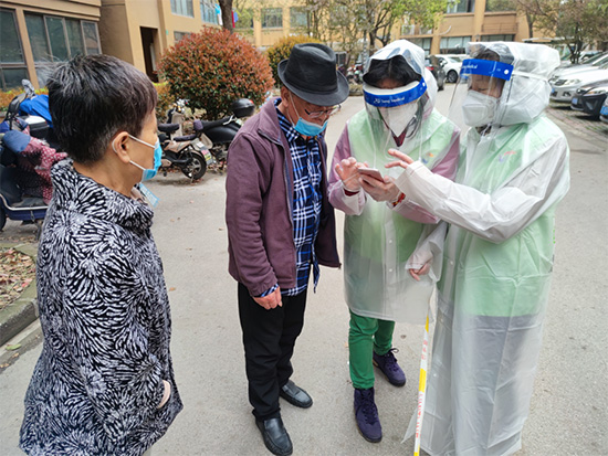 志愿者們?yōu)闊o手機(jī)老人登記核酸檢測(cè)碼