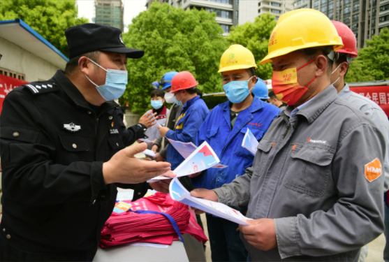 近日,江蘇省鎮(zhèn)江市潤州區(qū)七里甸司法所聯(lián)合七里甸派出所開展“國家安全法宣傳進工地”活動,工作人員來到五里社區(qū)轄區(qū)建設工地,向外來務工人員普及國家安全法及相關法律知識。圖為民警向外來務工人員宣講國家安全法及相關法律知識。