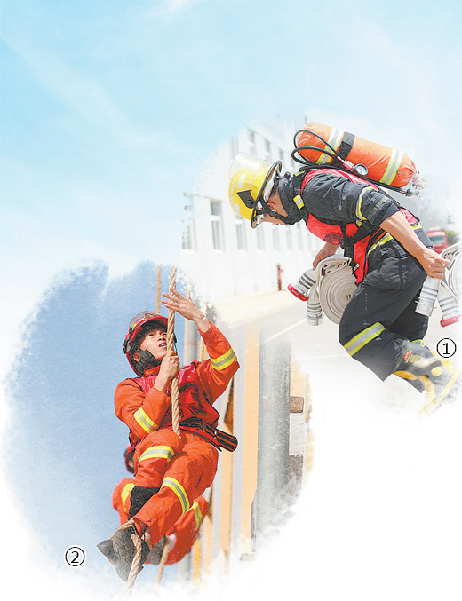 圖①、圖②為江蘇鹽城消防救援支隊(duì)西環(huán)路特勤站特勤隊(duì)員工作訓(xùn)練場景。胡萬春 曹兆龍攝影報道