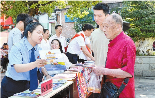 6月15日,湖北省羅田縣檢察院干警來(lái)到該縣人民廣場(chǎng)開(kāi)展打擊整治養(yǎng)老詐騙宣傳活動(dòng)?;顒?dòng)現(xiàn)場(chǎng),檢察干警圍繞養(yǎng)老詐騙的危害性、常見(jiàn)詐騙手段以及識(shí)別防范養(yǎng)老詐騙方法等內(nèi)容開(kāi)展宣傳,引導(dǎo)群眾樹(shù)立防范意識(shí),守好自己的養(yǎng)老錢(qián)。記者戴小巍 通訊員王章丁 攝