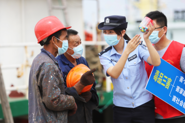 “6·26”國際禁毒日臨近,浙江省臺州市路橋區(qū)金清鎮(zhèn)禁毒辦把六月定為“禁毒宣傳月”,組織公安民警、禁毒社工等進村居、企業(yè)、學校、碼頭開展禁毒宣傳,普及禁毒法規(guī),共筑禁毒長城。圖為6月8日,金清派出所民警在漁港碼頭向休漁期維修漁船和織網(wǎng)補網(wǎng)的漁民宣傳毒品危害及禁毒法規(guī)。