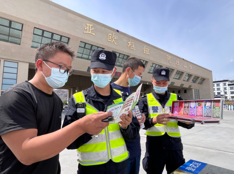 近日,新疆出入境邊防檢查總站烏蘭達(dá)布森邊境檢查站立足邊境查緝工作開展禁毒宣傳活動,民警通過毒品樣本展示、發(fā)放宣傳單等形式,引導(dǎo)群眾識毒、防毒、拒毒。圖為民警向群眾宣傳禁毒知識。