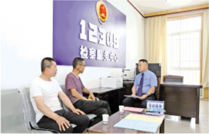 圖為王文喜(右一)在檢察服務(wù)中心接待來訪群眾。 本報通訊員 周潤霞 攝