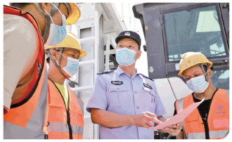 圖② 劉志軍在施工現(xiàn)場向工人講解鐵路安全常識。