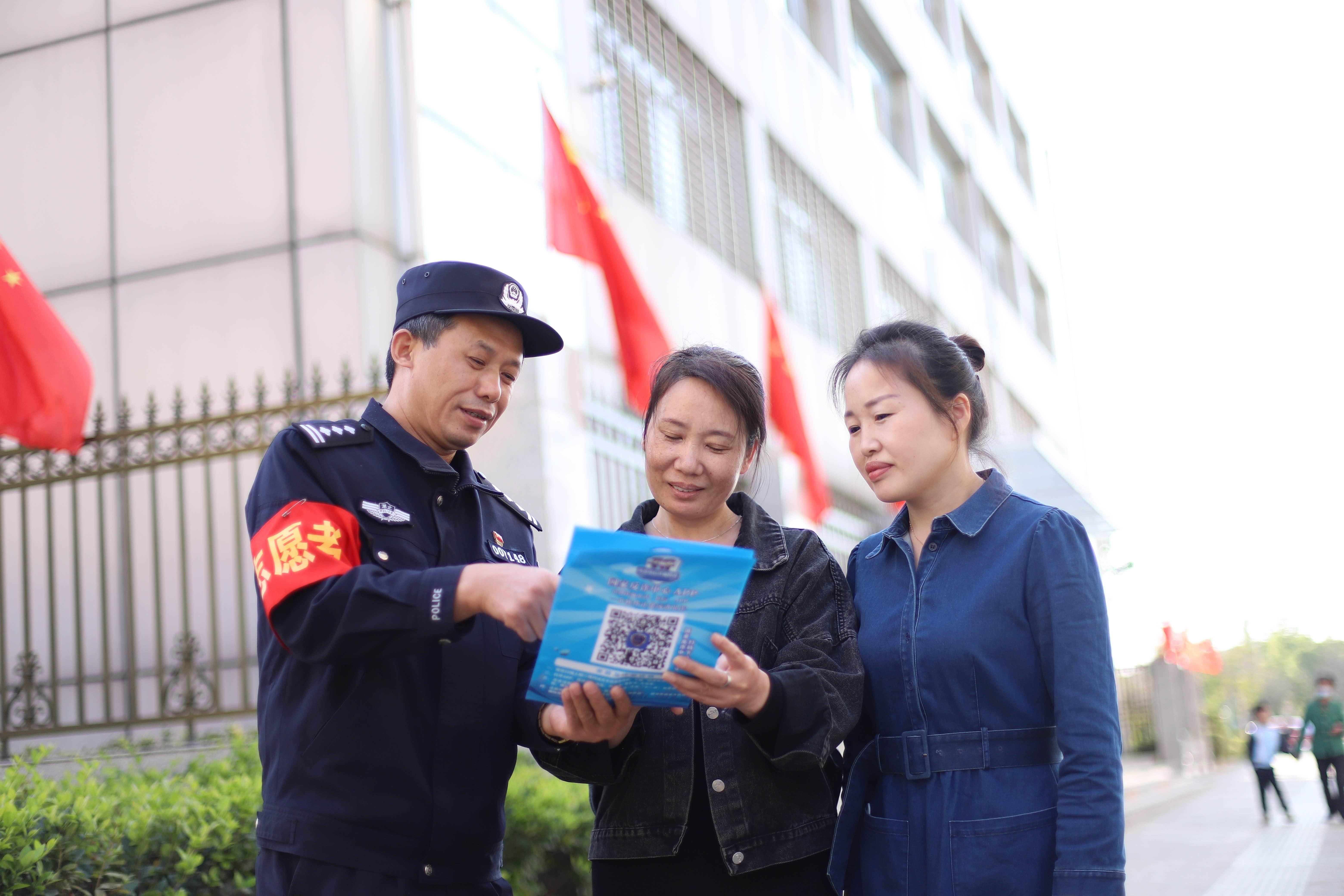 長安社區(qū)電詐警情曾居高不下,姜亨祝主動(dòng)爭取多方力量支持,開展六輪“掃樓”入戶宣傳,“一輪下來至少一個(gè)月,不落一戶”。姜亨祝每天編發(fā)、轉(zhuǎn)發(fā)防詐騙信息到59個(gè)微信群,對(duì)居民浸入式灌輸防詐知識(shí)。他還將自己編寫的反詐提示錄入小喇叭內(nèi),在轄區(qū)開展日常巡邏時(shí),沿路播放。天天在群里“打廣告”,有些居民嫌煩,將姜亨祝“踢”出,后禁不住他反復(fù)做思想工作,又將他拉了進(jìn)去。“反正就是賴在群里不走了?!彼χf。