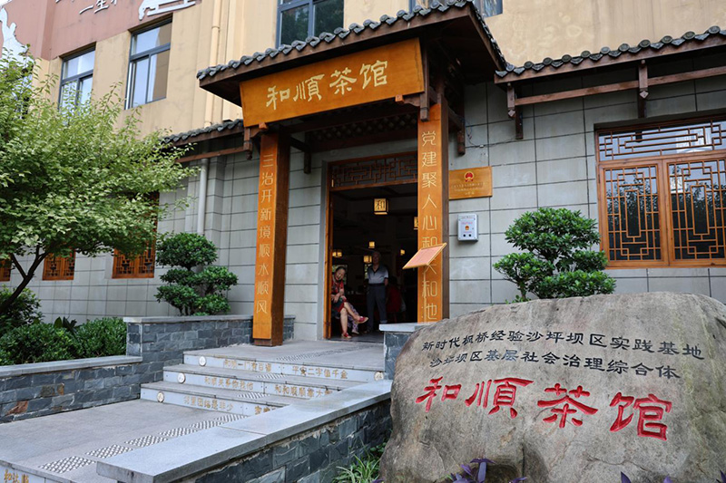 茶館在川渝地區(qū)是最常見(jiàn)的休閑去處,在重慶市沙坪壩區(qū)回龍壩鎮(zhèn)聚龍城社區(qū),一間非民辦“和順茶館”成為當(dāng)?shù)匕傩盏男聦櫍撼撕炔枇奶?,茶館還融合了各職能部門(mén)下沉社區(qū)的十幾個(gè)辦公室功能。政策宣講、糾紛調(diào)解、法律咨詢……一杯清茶間,社區(qū)里那些難辦、急辦的事總能得到妥善解決。