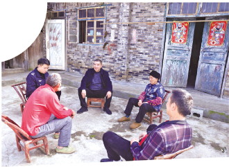老田了解案情后,經(jīng)過一番思索便動身前往孩子爺爺家??吹嚼咸飦砹耍⒆訝敔斶M(jìn)屋拿來凳子,兩人坐在院壩拉起了家常。后來老人把孩子父母也叫來了,幫著老田勸說兩人。