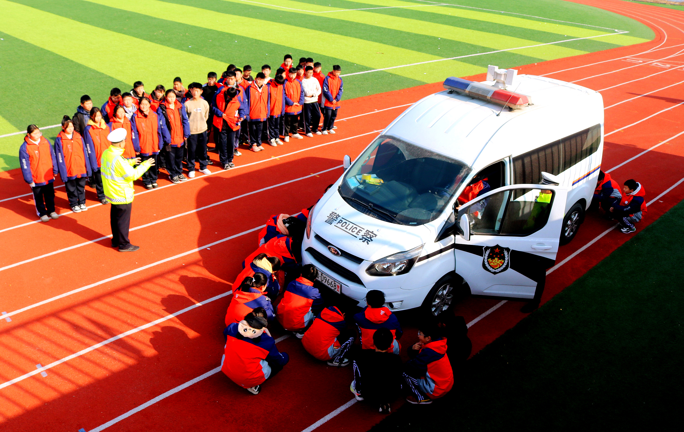1月5日,山東省滕州市公安局交警大隊民警走進轄區(qū)洪緒鎮(zhèn)龍莊小學(xué),通過情景演示、體驗互動等方式,向?qū)W生們講解車內(nèi)逃生方法、遠離車輛盲區(qū)、安全文明出行等交通安全知識,提高學(xué)生安全乘車意識。圖為民警在向?qū)W生們講解交通法規(guī)和交通安全知識。