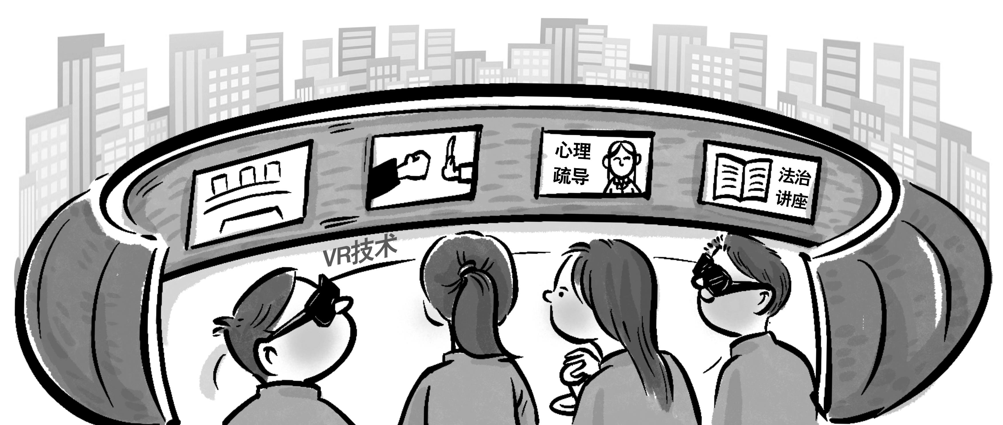 《法治日報》記者看到,《VR防校園欺凌》借助VR頭盔、手柄等配件,對校園暴力情景劇的發(fā)展路徑進(jìn)行可視化選擇,讓青少年深度體驗面對校園暴力時不同選擇帶來的后果。而在“小桔燈”青少年法治教育基地走廊,以漫畫形式講述青少年違法犯罪的原因、不良行為容易引起違法犯罪、未成年人刑事責(zé)任和民事責(zé)任年齡等法律知識,讓青少年學(xué)習(xí)了解相關(guān)法律知識。在心理咨詢室,設(shè)有心理測試自助管理系統(tǒng)以及沙盤游戲,青少年可以在心理咨詢師的指導(dǎo)下開展心理測評,解決在學(xué)習(xí)和生活中遇到的心理困擾和問題。社區(qū)矯正觀護(hù)中心則主要以樹立積極陽光的心態(tài)為主題,讓青少年在感受法律威嚴(yán)的同時,積極開展矯治教育,讓問題青少年順利回歸社會。