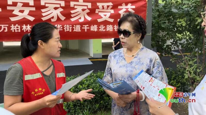 千峰北路社區(qū)網(wǎng)格員正在進(jìn)行反詐宣傳。中國(guó)青年網(wǎng)記者 張玘云 攝