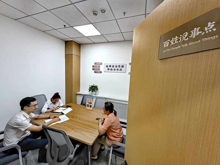 8月24日,在烏魯木齊市沙依巴克區(qū)“天山楓橋”綜合法務(wù)區(qū)“百姓說事點(diǎn)”,工作人員正在記錄轄區(qū)群眾反映的困難訴求及意見建議。法治日?qǐng)?bào)全媒體記者 潘從武 攝