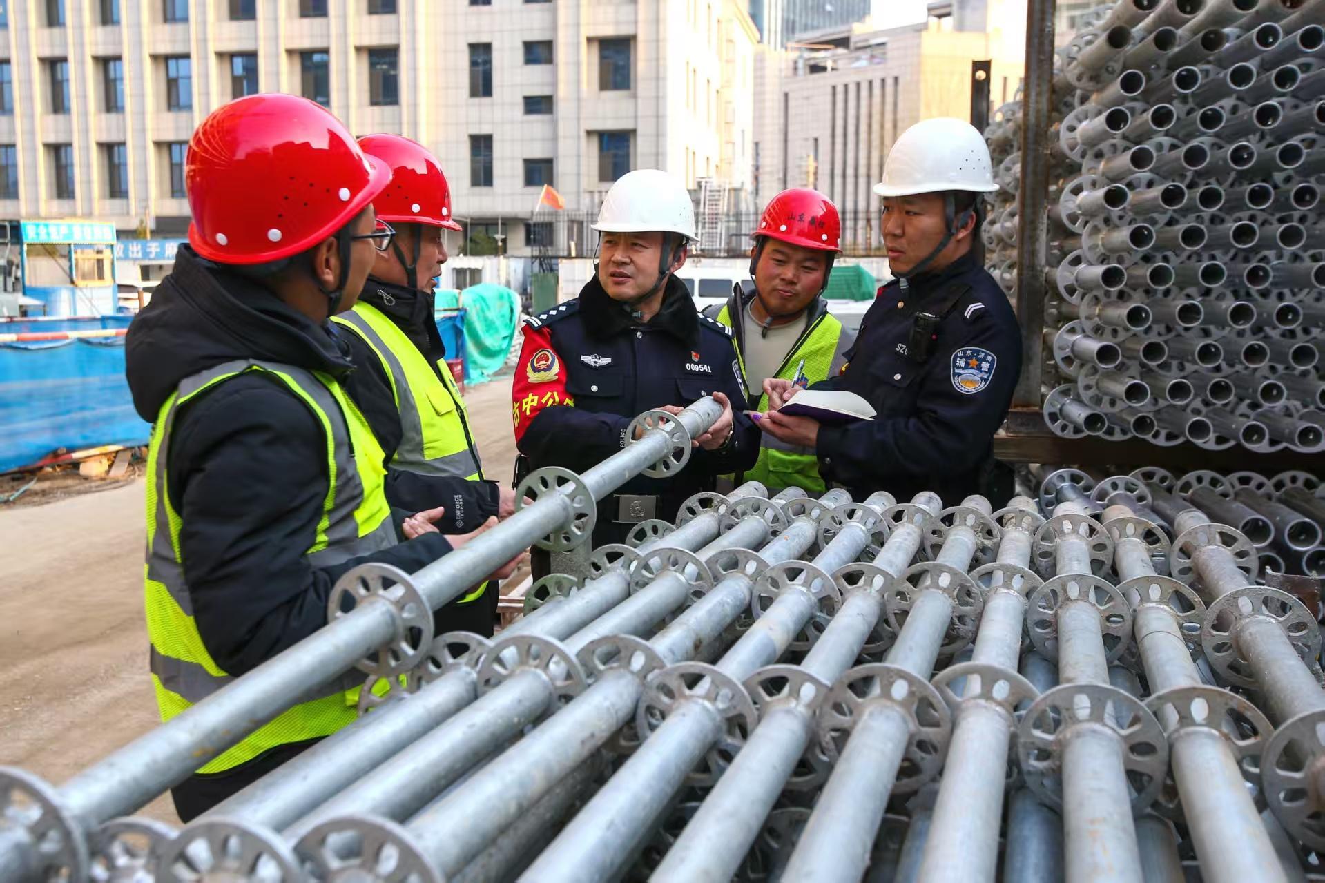 2月18日,山東省濟南市公安局市中區(qū)分局六里山派出所組織社區(qū)民輔警走進轄區(qū)建筑工地,通過開設“法治課堂”,向工人宣傳反電詐反邪教和安全生產常識,護航企業(yè)復工復產,提高工人的安全防范意識。圖為民輔警向工人了解安全生產情況。
