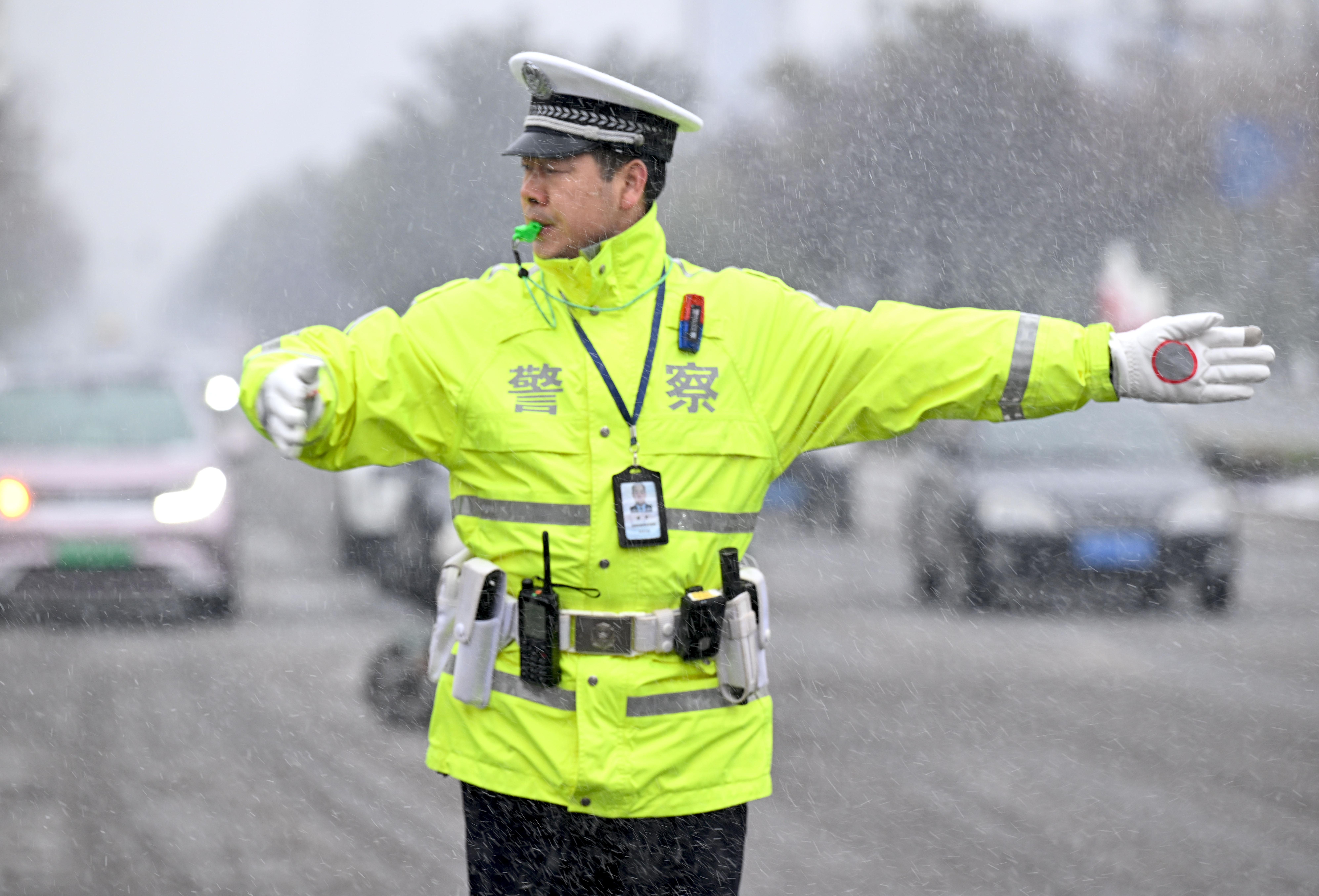 1月19日,安徽省亳州市因突降大雪造成路面結(jié)冰。安徽省亳州市公安局全面啟動(dòng)惡劣天氣應(yīng)急處置預(yù)案,加強(qiáng)巡邏防控,對(duì)路面車(chē)輛進(jìn)行及時(shí)疏導(dǎo),確保道路交通安全。