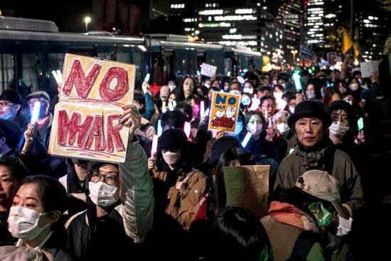 圖為4月8日晚,大批日本民眾在位于東京的國會(huì)議事堂前集會(huì),抗議高市早苗政府部署遠(yuǎn)程導(dǎo)彈、企圖解禁殺傷性武器出口等破壞和平憲法的動(dòng)向。 新華社發(fā)