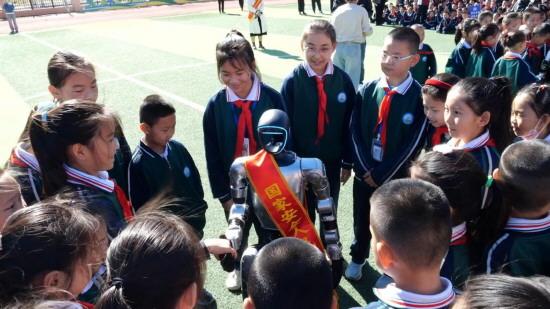 圖為可克達拉市第一小學學生與機器人互動。 本報通訊員 許磊 攝
