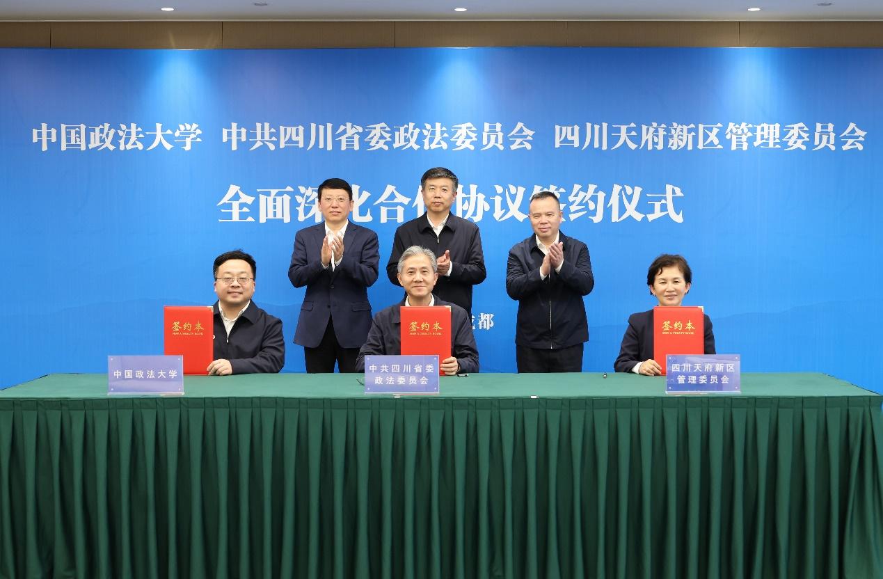 簽署《中共四川省委政法委員會 四川天府新區(qū)管理委員會 中國政法大學全面深化合作協(xié)議》。