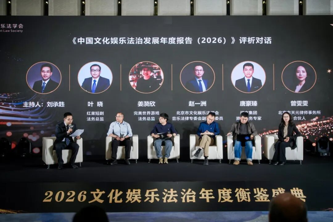 2026年4月17日,由北京市文化娛樂(lè)法學(xué)會(huì)(以下簡(jiǎn)稱“學(xué)會(huì)”)與北大法寶聯(lián)合主辦“2026文化娛樂(lè)法治年度衡鑒盛典”在北京舉行?;顒?dòng)以“以法為衡,以年為鑒”為主題,系統(tǒng)梳理了2025年度中國(guó)文化娛樂(lè)法治建設(shè)成果,并進(jìn)行相應(yīng)優(yōu)秀成果、優(yōu)秀人物的發(fā)布與頒證。來(lái)自學(xué)界、產(chǎn)業(yè)界及媒體界的二百余位嘉賓現(xiàn)場(chǎng)參加活動(dòng),活動(dòng)進(jìn)行了線上同步直播。