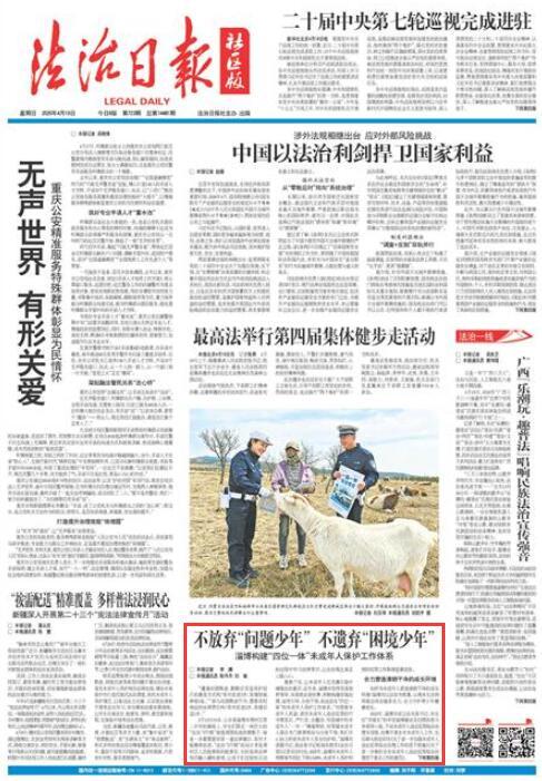 寓教于樂,讓未成年人在耳濡目染中增強(qiáng)法治意識(shí)。近年來,淄博市堅(jiān)持黨委政府領(lǐng)導(dǎo)、市委政法委統(tǒng)籌,積極構(gòu)建前端治理、宣傳引導(dǎo)、分級干預(yù)、依法懲處“四位一體”的未成年人保護(hù)工作體系?!皩η趾ξ闯赡耆藱?quán)益、誘發(fā)未成年人違法犯罪的行為零容忍、嚴(yán)打擊、全整治,對困境中的未成年人‘一對一’精準(zhǔn)幫扶,對罪錯(cuò)未成年人強(qiáng)化專門教育矯治與分級干預(yù),我們齊心協(xié)力織密未成年人安全防護(hù)網(wǎng)?!弊筒┦形睍?、政法委書記楊旭東接受《法治日報(bào)》記者采訪時(shí)說。2025年,淄博市未成年人刑事案件同比下降13.68%,未成年人保護(hù)和預(yù)防犯罪工作取得顯著成效。