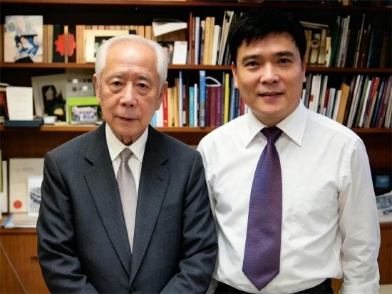 2010年,曲三強在香港樹仁大學講學時,與該校創(chuàng)辦人、大紫荊勛章獲得者胡鴻烈先生合影。 受訪者供圖