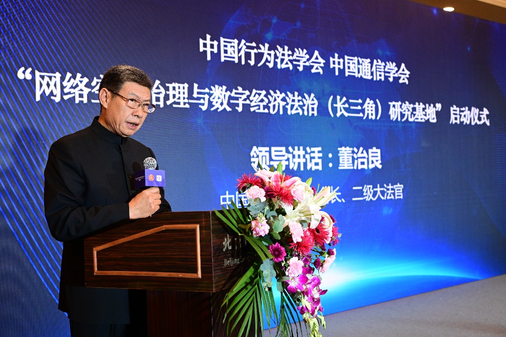中國(guó)行為法學(xué)會(huì)會(huì)長(zhǎng)董治良在致辭中指出,“網(wǎng)絡(luò)空間治理”和“數(shù)字經(jīng)濟(jì)法治”已是世界范圍內(nèi)的熱門(mén)關(guān)鍵詞之一。近年來(lái),我國(guó)在網(wǎng)絡(luò)安全、數(shù)據(jù)安全領(lǐng)域立法取得了重大進(jìn)展,尤其是網(wǎng)絡(luò)安全法、數(shù)據(jù)安全法、個(gè)人信息保護(hù)法的頒布施行,標(biāo)志著我國(guó)網(wǎng)絡(luò)安全和數(shù)據(jù)保護(hù)的基礎(chǔ)性法律架構(gòu)已經(jīng)建立。相關(guān)的落實(shí)和細(xì)化基礎(chǔ)性法律的行政法規(guī)、地方性法規(guī)和政府規(guī)章還在制定過(guò)程中??梢哉f(shuō),我國(guó)數(shù)據(jù)安全保障能力在不斷提升,數(shù)據(jù)開(kāi)發(fā)利用和產(chǎn)業(yè)發(fā)展得到法律的支持和保障,我國(guó)數(shù)據(jù)潛力即將得以極大釋放,產(chǎn)出巨量的經(jīng)濟(jì)成果。在這樣的大背景下,我們啟動(dòng)成立“網(wǎng)絡(luò)空間治理與數(shù)字經(jīng)濟(jì)法治(長(zhǎng)三角)研究基地”,以加強(qiáng)網(wǎng)絡(luò)治理與數(shù)字法治理論和實(shí)踐問(wèn)題研究,可謂恰逢其時(shí),意義重大。希望研究基地圍繞黨中央決策部署和國(guó)家戰(zhàn)略規(guī)劃,準(zhǔn)確對(duì)標(biāo)新時(shí)代的新要求,聚合國(guó)內(nèi)外優(yōu)勢(shì)科研力量,加強(qiáng)數(shù)字治理、數(shù)據(jù)確權(quán)、數(shù)據(jù)共享、數(shù)據(jù)開(kāi)放、數(shù)字政府等領(lǐng)域的理論研究,撰寫(xiě)高層次專(zhuān)題報(bào)告,努力形成一批有辨識(shí)度、有影響力又實(shí)效管用的數(shù)字法治研究成果,把研究基地辦成覆蓋長(zhǎng)三角地區(qū)、服務(wù)全國(guó)的網(wǎng)絡(luò)治理與數(shù)字經(jīng)濟(jì)法治高端專(zhuān)業(yè)智庫(kù)。