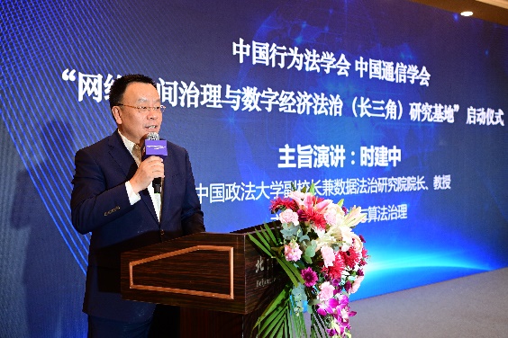 主持研究基地啟動(dòng)儀式暨數(shù)據(jù)治理與隱私保護(hù)高端研討會(huì)的浙大寧波理工學(xué)院黨委書(shū)記、浙江大學(xué)寧波科創(chuàng)中心(寧波校區(qū))建設(shè)工作領(lǐng)導(dǎo)小組副組長(zhǎng)胡征宇介紹了研究基地的設(shè)立背景和工作目標(biāo)。網(wǎng)絡(luò)空間治理與數(shù)字經(jīng)濟(jì)法治(長(zhǎng)三角)研究基地是為深入學(xué)習(xí)貫徹習(xí)近平法治思想,落實(shí)《法治社會(huì)建設(shè)實(shí)施綱要(2020-2025年)》提出的“推動(dòng)社會(huì)治理從現(xiàn)實(shí)社會(huì)向網(wǎng)絡(luò)空間覆蓋,建立健全網(wǎng)絡(luò)綜合治理體系,加強(qiáng)依法管網(wǎng)、依法辦網(wǎng)、依法上網(wǎng),全面推進(jìn)網(wǎng)絡(luò)空間法治化,營(yíng)造清朗的網(wǎng)絡(luò)空間的建設(shè)目標(biāo)”,根據(jù)《法治社會(huì)建設(shè)實(shí)施綱要(2020-2025年)》關(guān)于“充分發(fā)揮高等學(xué)校、科研院所等智庫(kù)作用,大力打造法治社會(huì)建設(shè)理論研究基地”的具體要求設(shè)立的。該基地由中國(guó)行為法學(xué)會(huì)、中國(guó)通信學(xué)會(huì)聯(lián)合發(fā)起,浙江大學(xué)寧波科創(chuàng)中心(寧波校區(qū))、浙大寧波理工學(xué)院共建。研究基地設(shè)在“書(shū)藏古今,港通天下”的浙東名城寧波市,以“推進(jìn)網(wǎng)絡(luò)空間法治化,培育數(shù)字經(jīng)濟(jì)新優(yōu)勢(shì),培養(yǎng)現(xiàn)代數(shù)字法學(xué)人才”為目標(biāo),將現(xiàn)代法學(xué)與新一代信息通信技術(shù)(ICT)、媒體融合發(fā)展相結(jié)合,對(duì)接法治社會(huì)建設(shè)、網(wǎng)絡(luò)空間治理、數(shù)字經(jīng)濟(jì)和數(shù)字化轉(zhuǎn)型等國(guó)家戰(zhàn)略,緊緊圍繞中央決策,結(jié)合浙江省和長(zhǎng)三角地區(qū)網(wǎng)絡(luò)治理和數(shù)字化轉(zhuǎn)型的實(shí)踐,聚合國(guó)內(nèi)外優(yōu)勢(shì)科研力量,系統(tǒng)研究網(wǎng)絡(luò)空間治理和數(shù)字經(jīng)濟(jì)領(lǐng)域的基礎(chǔ)理論和前沿法律問(wèn)題,撰寫(xiě)高層次網(wǎng)絡(luò)空間治理與數(shù)字經(jīng)濟(jì)法治研究專(zhuān)題報(bào)告,為中央和地方依法構(gòu)建網(wǎng)絡(luò)空間治理與數(shù)字經(jīng)濟(jì)法律體系提供智庫(kù)支撐,為深入推進(jìn)網(wǎng)絡(luò)空間和數(shù)字經(jīng)濟(jì)領(lǐng)域治理體系和治理能力現(xiàn)代化作出積極貢獻(xiàn)。
