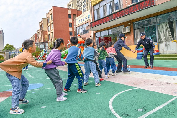 近年來,公安機(jī)關(guān)已選派30余萬名業(yè)務(wù)能力強(qiáng)、經(jīng)驗(yàn)豐富的公安民警兼任法治副校長,深入學(xué)校組織開展形式多樣的安全教育活動。圖為安徽省涇縣公安局開發(fā)區(qū)派出所民警開展法治副校長進(jìn)校園活動。 潘涯磊 攝