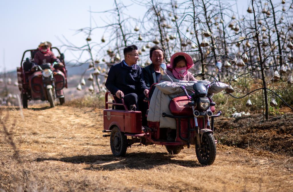全國(guó)人大代表袁海波(右三)在云南省曲靖市馬龍區(qū)一種植基地了解務(wù)工人員就業(yè)需求(2023年2月11日攝)。新華社記者 江文耀 攝