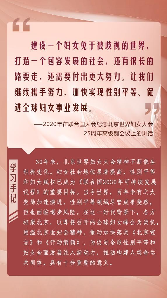 在全球婦女峰會(huì)即將舉行之際,我們重溫習(xí)近平總書記的重要論述,共同展望婦女發(fā)展的美好未來,期待全球婦女事業(yè)發(fā)展譜寫新的絢爛篇章。