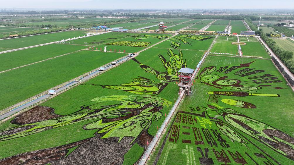 2025年6月18日,稻漁空間鄉(xiāng)村生態(tài)觀光園的巨幅稻田畫(無人機照片)。新華社記者王鵬 攝