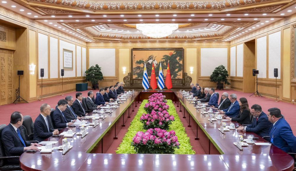 2月3日,國家主席習(xí)近平在北京同來華進(jìn)行國事訪問的烏拉圭總統(tǒng)奧爾西舉行會談。