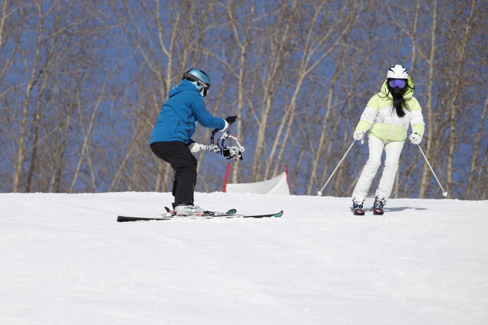 攝影師曲曉彤在跟拍滑雪愛好者。(受訪者供圖)