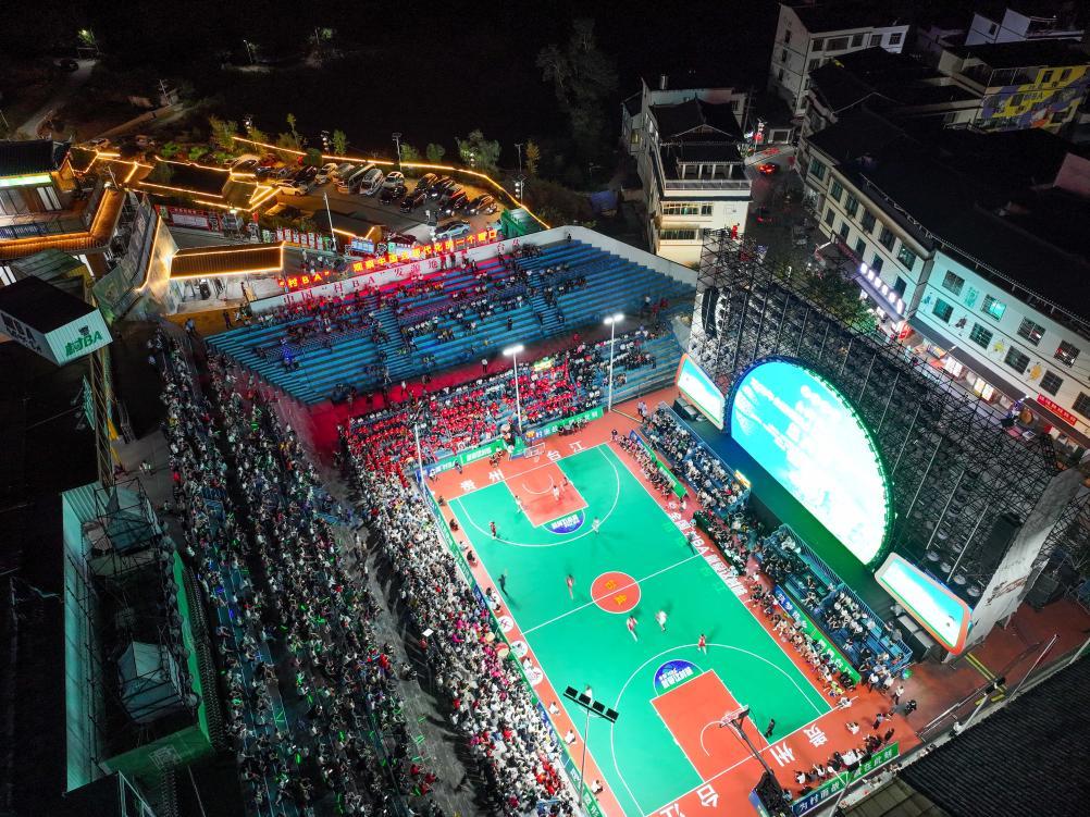 2025年10月12日,全國和美鄉(xiāng)村籃球大賽(“村BA”)總決賽在貴州省臺江縣臺盤村開賽。新華社發(fā)(袁福洪攝)